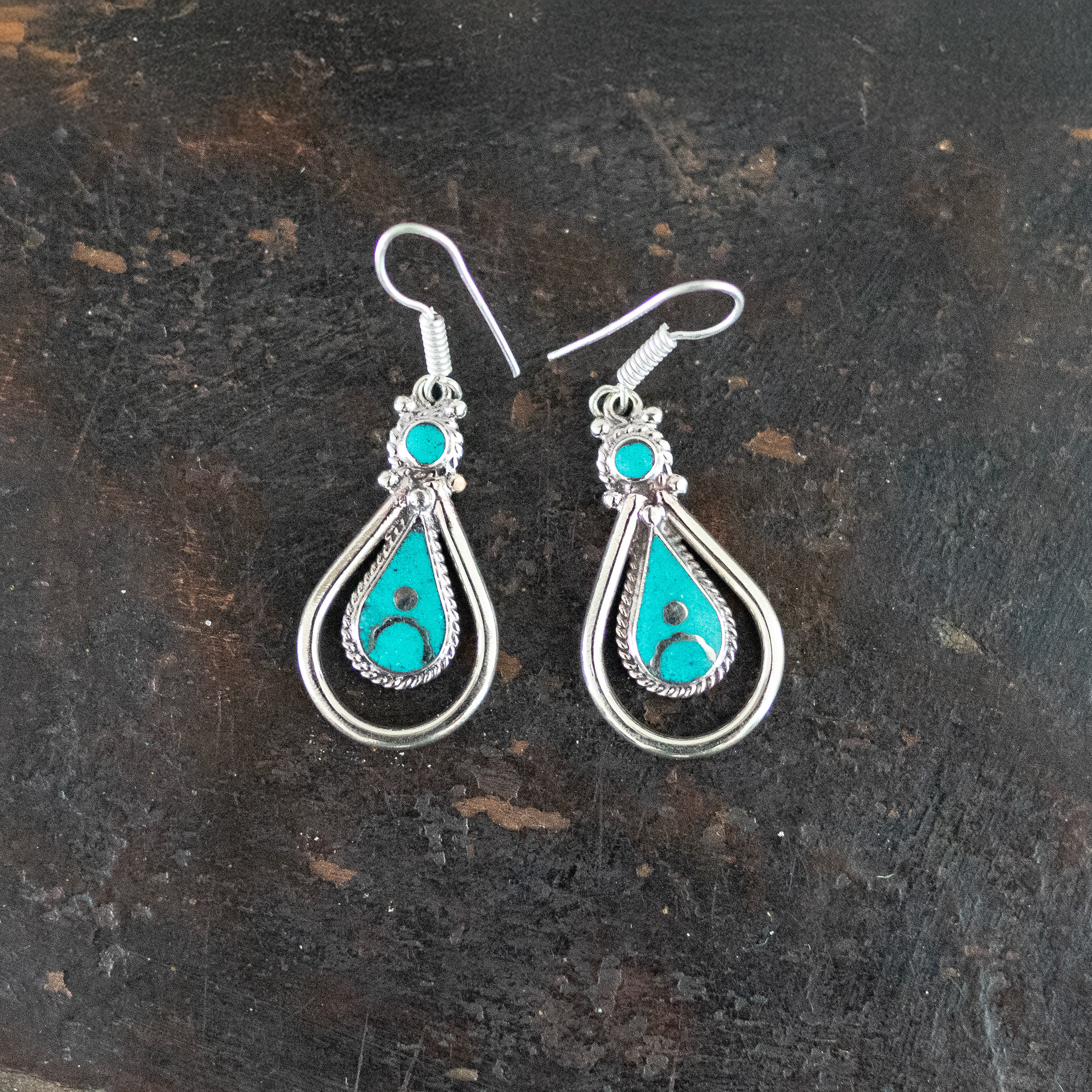 These gorgeous turquoise Tibetan earrings feel fun and free. Sophisticated with a funky edge, these earrings make accessorizing for any occasion easy. Strikingly bold and feminine, you are sure to be reaching for these time and time again. These ethnic earrings are lightweight and effortless, but have an element of boldness that can be worn casual or as a statement. They are super comfortable for your every day wear.