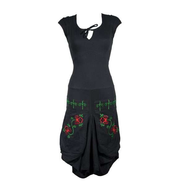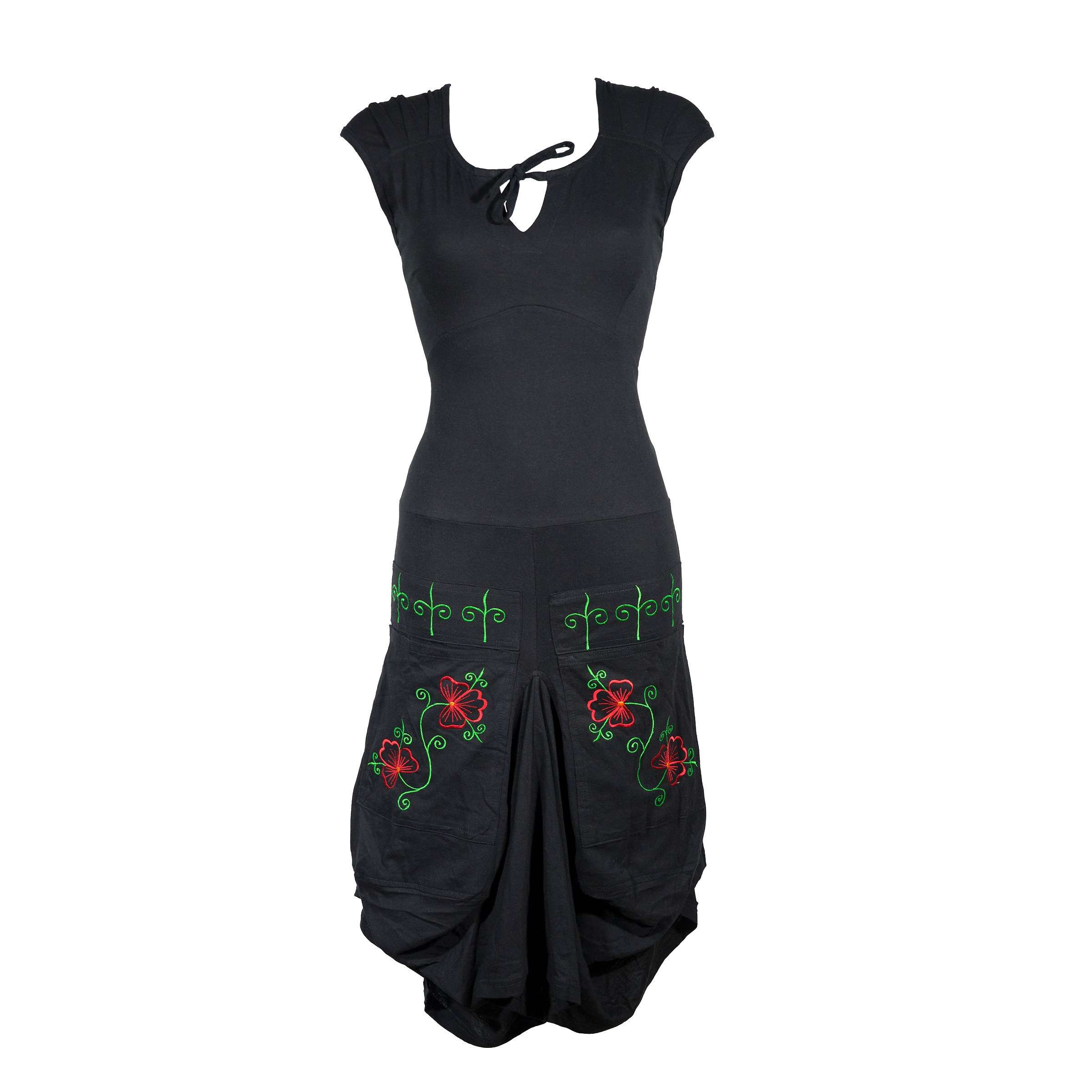 Eine spannende Mischung: die leuchtenden Stickereien werden von dem schwarzen Hintergrund kontrastiert und verleihen dem Kleid seinen ganz besonderen Look. Dieses Kleid gibt den perfekten Boho-Look ab. Und nicht zu vergessen: dieses Prachtstuck hat sogar Taschen!