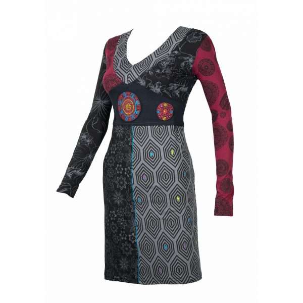 This dress is just as great as it looks. Its warm winter colors in combination with stunning ethnic all-over prints and delicate embroidery details create a striking and unique look. This dress is bound to stand out on dull cold days. Definitely one of our favorites ..
