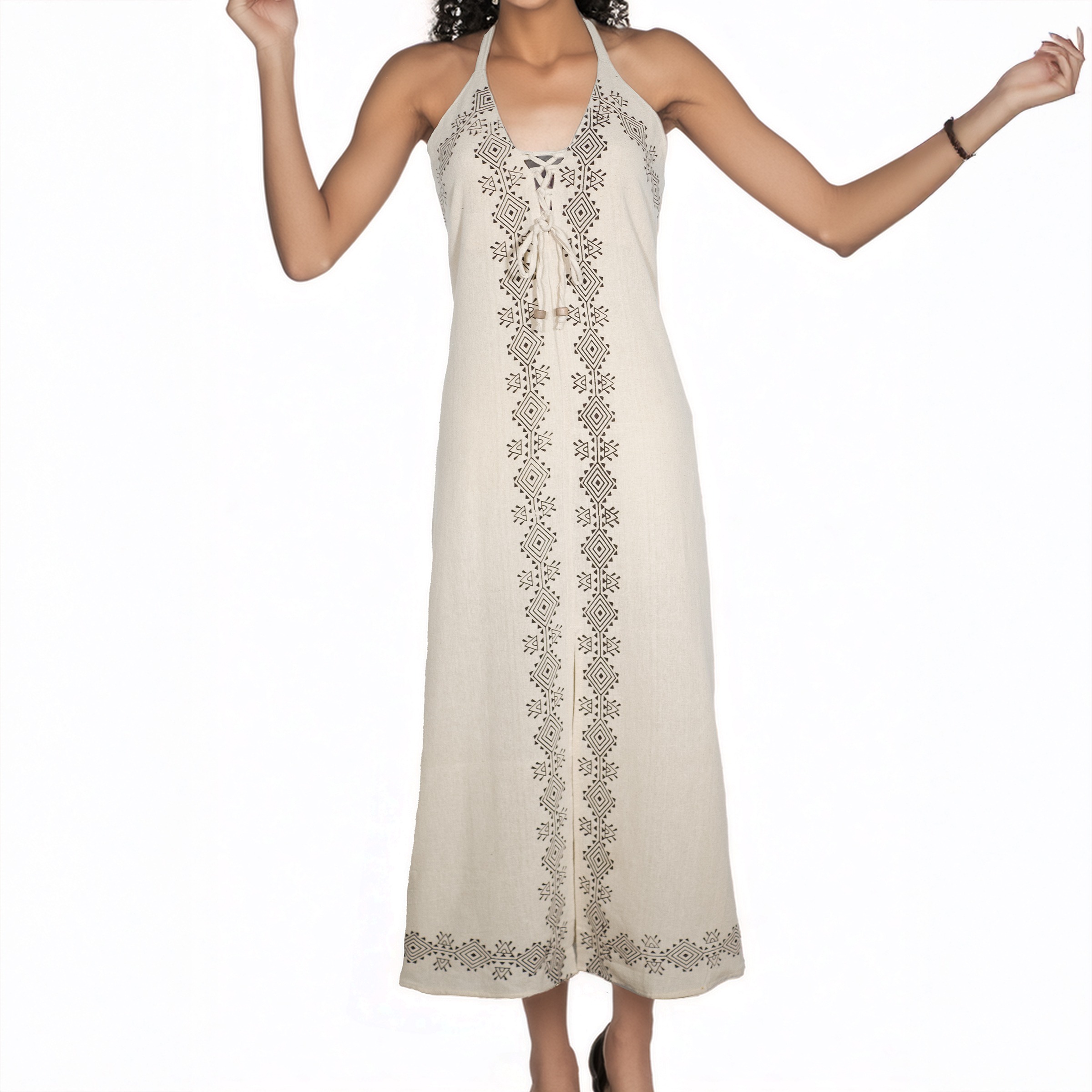 A favorite to turn all heads around you: this gorgeous nature inspired dress brings that bohemian vibe we love in an easy fit that will make you feel embraced. The blockprint details in the middle are as lovely as they look, you can trust us: this dress is the perfect companion for all your sun-soaked adventures. You won’t take it off!