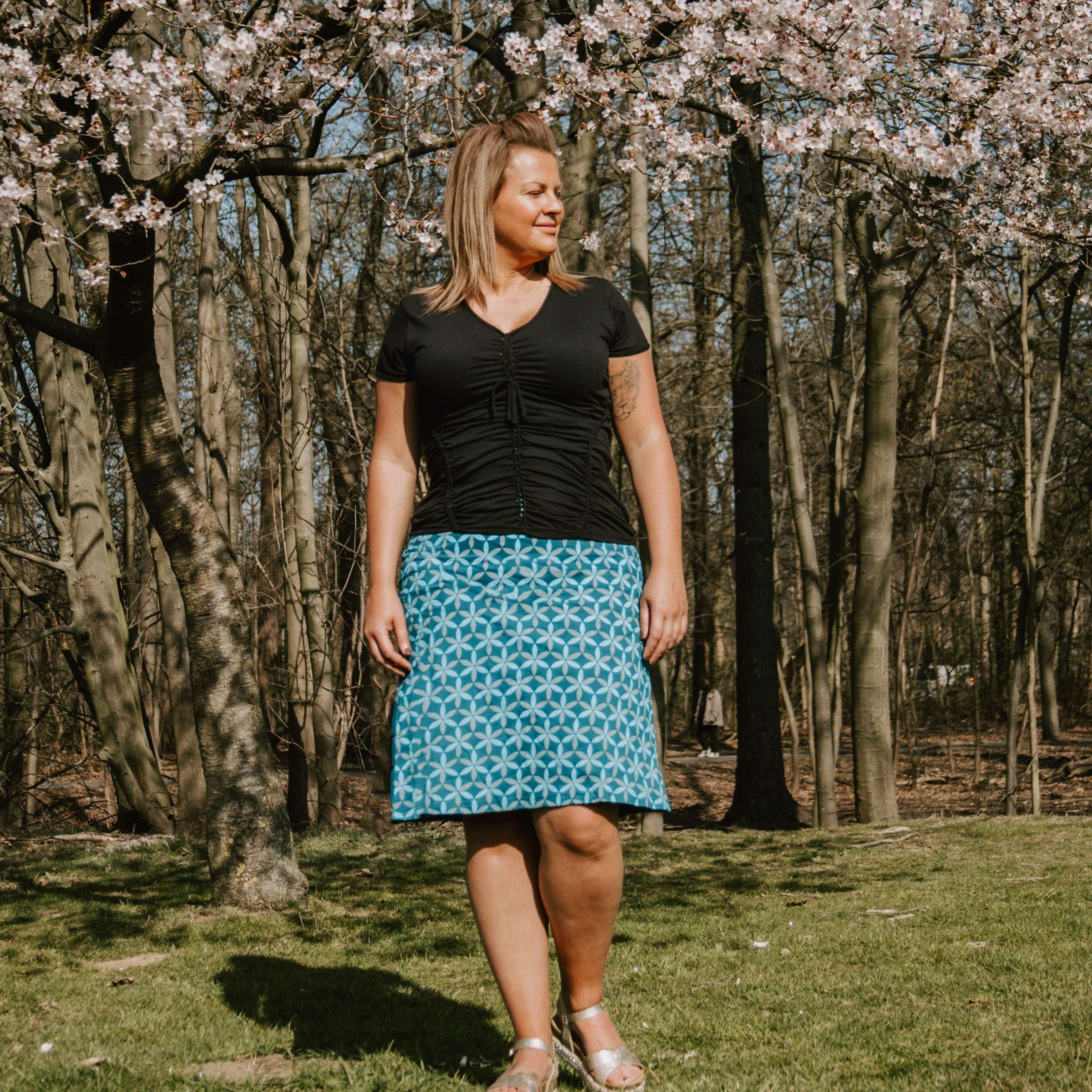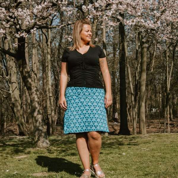 Made from soft organic cotton, you can have confidence you will be freshly fabulous and comfortable all day long. This knee-length skirt is easy to combine with an even color or with one of our tops. It is designed with an adjustable elastic waistband that will keep you comfortable all day. Because of its great fit we have chosen to combine the sizes. You can choose between: S/M, L/XL and XXL. Oh and did we already mention, our skirts don’t wrinkle easily which makes them travel perfect!