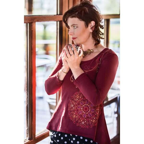 An all-season favorite! This top with a gorgeous mandala print is highlighted by a vibrant burst of intricate embroidery details, making it everything but ordinary. No matter the hour, you’ll simply look stunning.